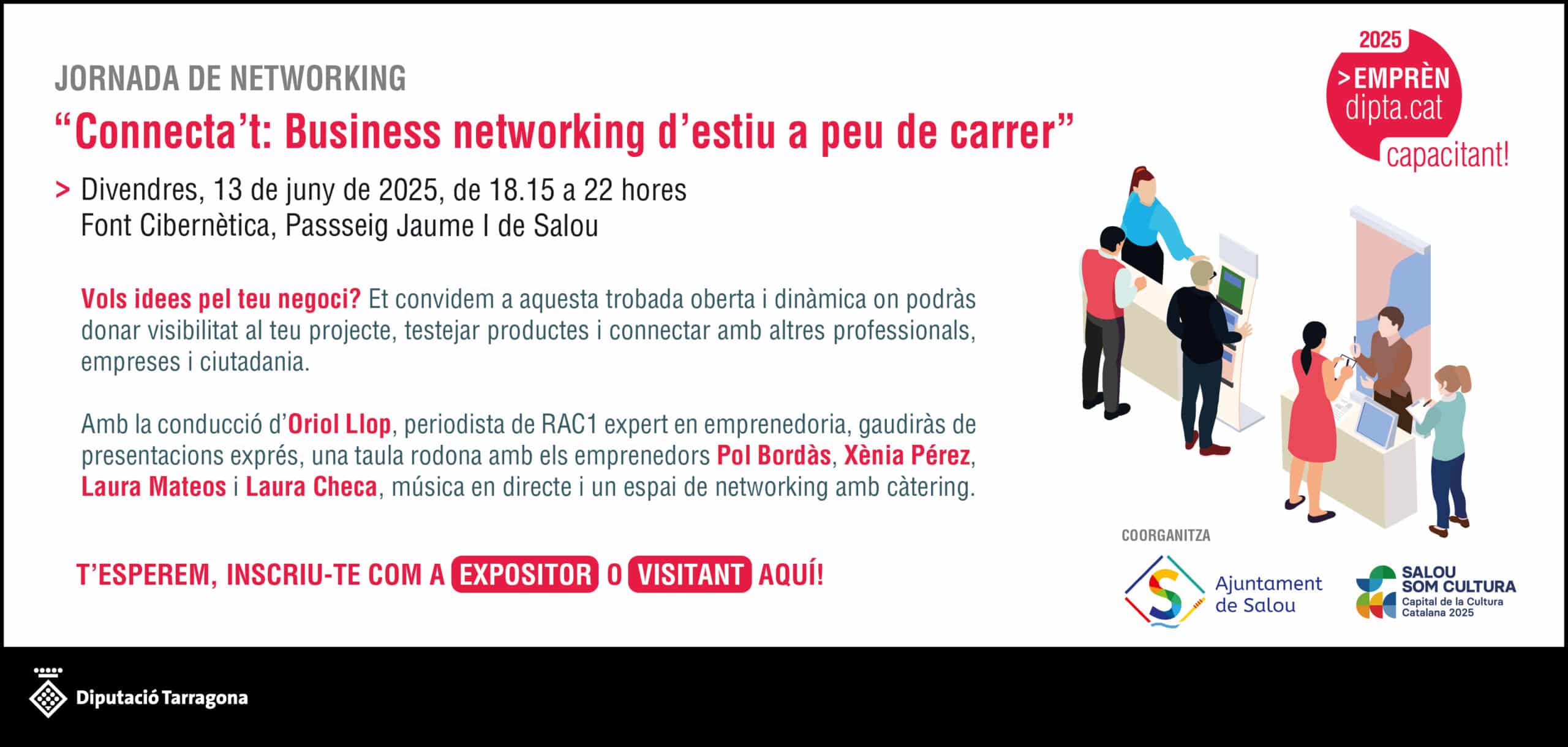 El proper divendres, 13 de juny de 2025, el Passeig Jaume I de Salou es convertirà en el centre neuràlgic del talent i l’activitat emprenedora del territori amb el Business Networking d’estiu de la Diputació. Una trobada oberta, dinàmica i participativa pensada per connectar persones emprenedores, donar visibilitat a projectes innovadors i crear sinergies reals […]